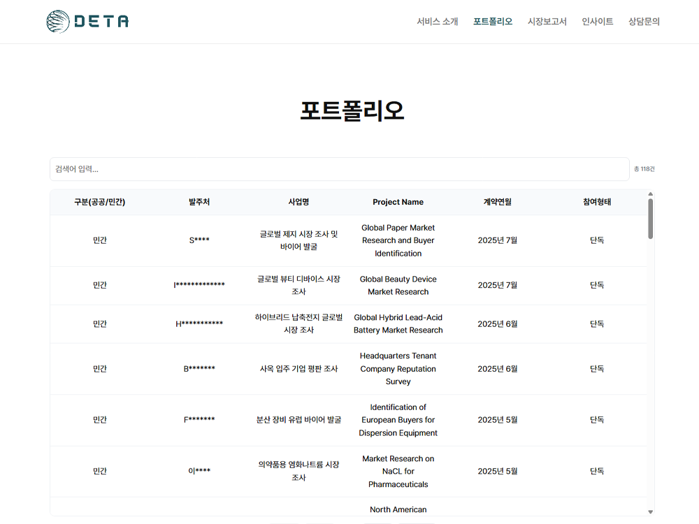 구글 스프레드시트와 연동된 포트폴리오 기능으로 데이터를 수정하면 사이트에 자동으로 반영되며,